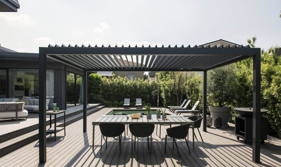 För att maximera användarvänligheten kan våra pergolasystem styras via fjärrkontroll, smartphone eller en helt automatisk funktion. Smidig motorstyrning gör att pergolan används oftare, upp till 80 % mer än traditionella lösningar.